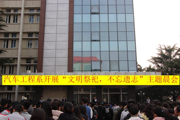 又是一年清明时,哀思如潮祭先祖。4月1日早,汽车工程系贾汪校区开展了“文明祭祀、不忘遗志”主题晨会,党支部书记张允志,学管副主任王冬萍、郝旺林,全体班主任和1200名员工参加。4月3日,汽车系33个开展主题班团课。