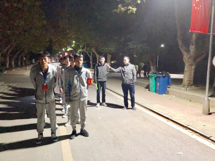 每周四晚由我系员工会治保部进行专项治理工作,系学管老师带队进行校园巡查。