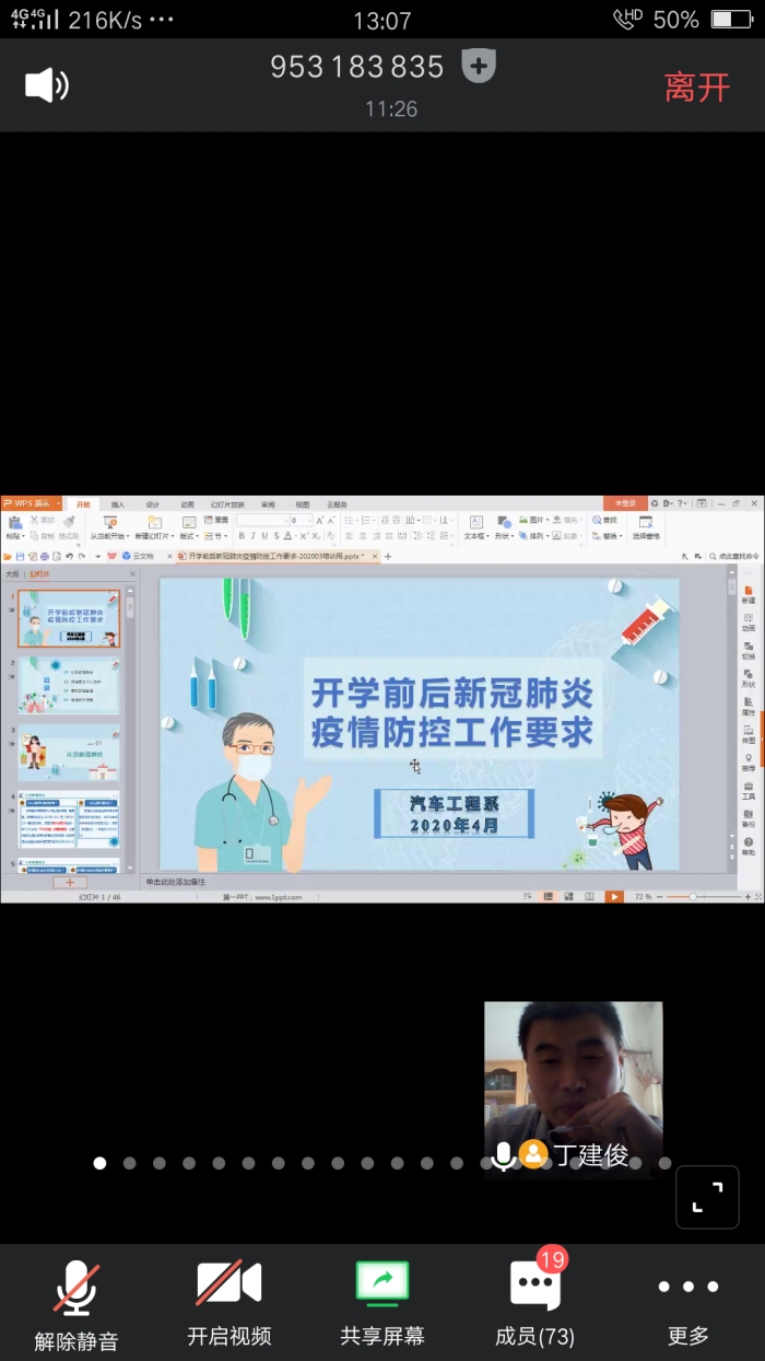 进一步加强疫情防控工作,为开学前后日常防控做好充分准备,保证全体同学的身体健康和生命安全,4月3日下午,汽车工程系组织全系员工干部开展疫情防控线上专题培训。此次培训由丁主任主讲。