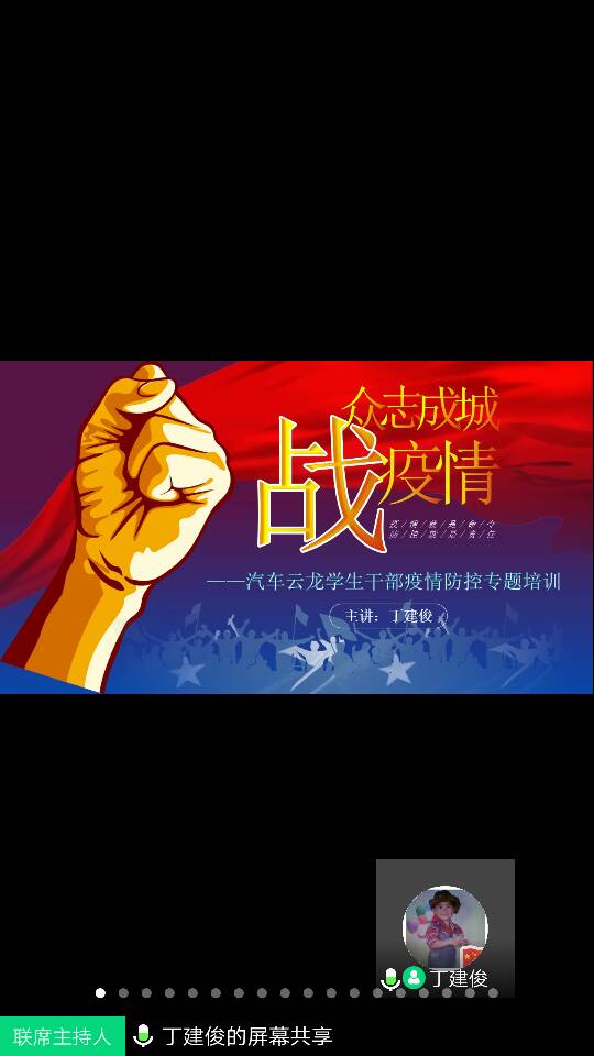 为了进一步落实学院关于疫情防控工作的指示精神,提升员工干部群体在疫情防控工作中的担当意识、责任意识。汽车工程系于4月13日利用腾讯会议平台召开员工干部疫情防控工作例会。汽车系丁主任、两位辅导员、员工会干部以及各班班长参加了此次会议。会上,丁主任带领大家观看了江苏省高校关于疫情防控相关文件,接着学习了苏安院防组〔2020〕42号文件《太阳成集团tyc151cc疫情防控专项培训工作方案》,传达了学院防疫工作的具体要求,并特别强调严禁提前返校。他提出员工干部要提高疫情防疫知识,在员工群中充分发挥先锋模范作用,积极配合班主任、辅导员做好班级各项统计上报工作。