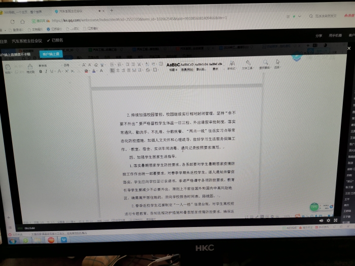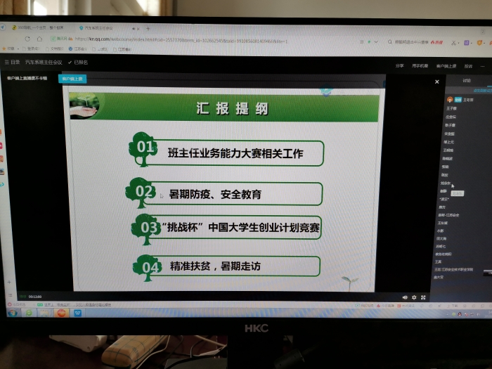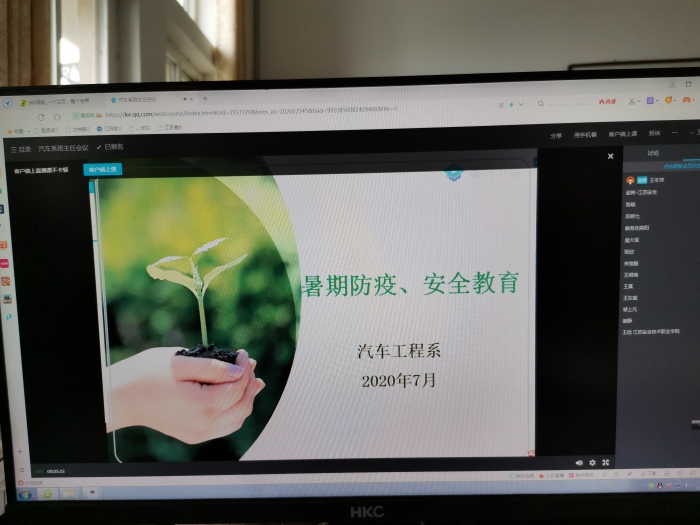 根据苏安院学[2020]25号文件精神,2020年7月20日,汽车工程系通过腾讯课堂召开线上暑期疫情防控和安全教育会议,会议由学管主任王冬萍主持,全体班主任参加。