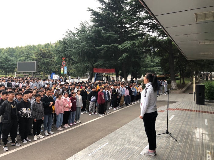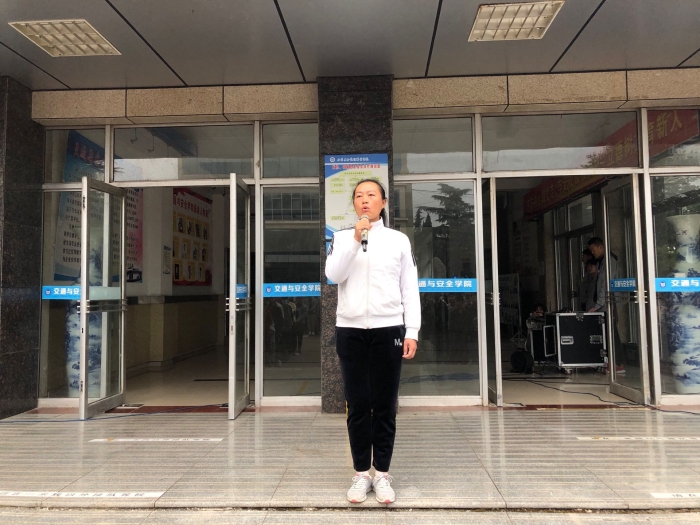 10月12日早,交通学院在教学楼下召开第六周晨会教育,学管主任王冬萍做主题发言。